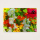 This colourful artist trading card is a feast for the eyes! It features an informal garden setting with pink and white snapdragons, nasturtiums in orange, yellow and red and one red poppy. The original photograph has been digitally enhanced to produce an impressionistic feeling.