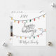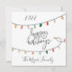 Modern, simple and cheerful happy holidays script lettering decorated with bright and colourful strings of Christmas lights. Customise and personalise with year and family name to make it unique.