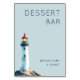 This charming wedding tabletop sign features a whimsical lighthouse illustration set against a serene light blue background, creating a coastal and inviting atmosphere. The design includes playful text that reads "DESSERT BAR" in bold letters, followed by "please take a treat!" in a friendly font, encouraging guests to indulge. With its soft color palette and semi-realistic style, the sign evokes nostalgia and warmth, making it perfect for enhancing the dessert experience at your event. Ideal for weddings or gatherings, this sign combines elegance with a touch of seaside charm.