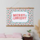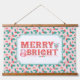 Cheerful Merry & Bright | Retro Pink and Red Holly Hanging Tapestry