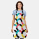 Abstract, cheerful, trendy pattern made with colourful, circular geometric shapes. Red, blue, yellow and black colours are used. Playful, fun and modern vector background for graphic design.
