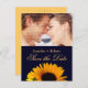 Planning a sunflower wedding? This cheerful postcard is a perfect choice to announce your wedding day to family and friends. Personalise it with your party details and replace template photo with one of your own. This design has a yellow background on postcard back for an easy writing, but an alternative with navy blue background is available in my store.
