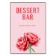 This wedding tabletop sign features a minimalist design with a soft pink background, creating an inviting and cheerful atmosphere. The bold red text "DESSERT BAR" is prominently displayed at the top, followed by the friendly phrase "please take a treat!" in smaller letters, both using clean sans-serif fonts for a modern look. At the bottom, two detailed peony illustrations add a touch of elegance and natural beauty to the composition. Perfect for guiding guests to a sweet selection, this sign combines simplicity and charm, making it ideal for any dessert station at your special event.