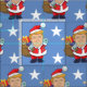 Cheerful American President Donald Trump Santa Claus. Christmas blue winter pattern with stars.