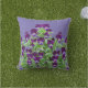 Add a splash of purple colour to your outdoor living space. This cheerful pillow features purple viola flowers with green leaves on a purple background. Buy this floral pillow for your outdoor living space or choose another fabric for indoor use.