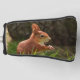 A rare red squirrel appears to smile with delight as it enjoys a snack in the lush grass. Its open mouth and bright eyes reflect pure joy, capturing a fleeting moment of happiness in nature.
