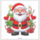 A joyful Santa Claus surrounded by festive decorations, Christmas trees, and wrapped presents, celebrating the holiday season with happiness and warmth, bringing magical cheer to children and families alike.