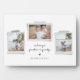 Cheerful sentiments snapshot photo plaque. Features, 3 framed photos with scrapbook style washi tape accents, two template text lines for your message and names with heart detail in black on white colour background.