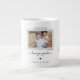 Cheerful sentiments snapshot photo mug. Features, 3 framed photos with scrapbook style washi tape accents, two navy blue template text lines for your message and names with navy blue heart detail.