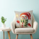 A festive snowman adorned with a red hat and scarf during a snowy winter.