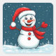 Cheerful Snowman in Santa Hat with Scarf Square Sticker