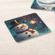 Cheerful Snowman Party Invitation - Festive Card. Square Paper Coaster