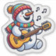 A cheerful snowman, adorned with a colourful scarf and a festive hat, strums a guitar while singing. Surrounded by musical notes, this joyous character spreads holiday spirit, embodying the warmth and happiness of the Christmas season.