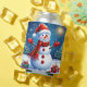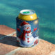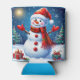 Cheerful Snowman Wearing a Santa Hat Can Cooler
