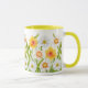 Original fine art design of cheerful daffodils and narcissus flowers on a quality and customisable Ringer coffee mug for spring by designer Carolyn McFann of Two Purring Cats Studio.