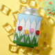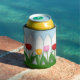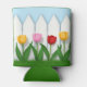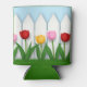 Cheerful Spring Tulips & White Picket Fence Can Cooler