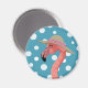 Cheerful Summer Flamingo Blue Polka Dot summer hat Magnet