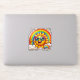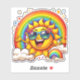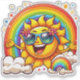 A vibrant, smiling sun radiates joy while wearing stylish sunglasses. It stands out against a colourful backdrop of clouds and a captivating rainbow. The energetic scene encourages positivity and warmth, reminding everyone to embrace happiness.