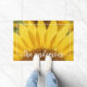 A doormat to offer a cheerful welcome to your guests. The simple design features a close up photo of vibrant yellow sunflower petals. Personalise with your family name in white typography