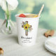 Happy yellow sunflowers, eucalyptus, and earthy pampas grass displayed on a dark wooden cross create an elegant floral design for your baptism party cups. These paper cups are perfect for any late summer or autumn baptism.