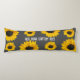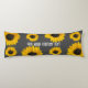 Cheerful yellow sunflower art on charcoal grey add your own name or custom text on this body pillow for home decor. Photography copyright Ann Powell all rights reserved.