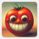 anthropomorphic tomato with a large, exaggerated grin and wide, expressive eyes.