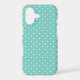 This elegant iPhone case features a playful and cheerful design of white small polka dots on a impressive turquoise green background. The background has a vivid and deep and unique green hue colour and the scattered white dots add a touch of whimsy and fun.