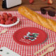 Add a splash of urban cool to your table with this bold and vibrant paper plate. With a design of red cherries and white bricks, on a red background, this graffiti-style design brings street art flair to any occasion. The caption, 'Chillin', cherries 'n' cheerful vibes,' creates a laid-back atmosphere, perfect for parties, picnics and relaxed get-togethers. A fun and bright choice for fresh and modern entertaining.