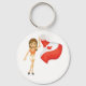 A lady holding a Canadian flag and cheering for canada. This design looks really effective on these Keychain