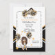 Cheerleader Birthday Party in White, Black & Gold Invitation