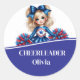 This classic round sticker is shown with a cute cheerleader print with a sample name, customise with this template shown and change the name to yours.