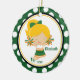 Dated Cute Green & White Cheerleader Cheering Girl Christmas Ornament set on a green & white polka dotted background. A Wonder Christmas gift sure to be treasured for many years to come.
