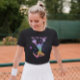 Kiwis wear all black as the t shirt is with Green lettering to match the environment and yellow for joy and purple thistle to match my hair.
