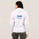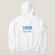 This American Apparel womens hoodie jacket is shown in white with royal blue text: Cheerleader on the front pocket area and on the back.