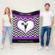 Personalised cheer or pom fleece blanket with chevron stripes, a cheerleader/pom girl inside a purple heart, and custom text.