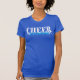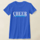 Cheerleader practice shirt in white and blue with back handspring silhouettes. Shirt is perfect for cheer or tumbling practice.