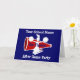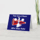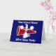 Cheerleader's card with cheer megaphone and cheerleader in red, white, and blue. Customise with your name and school name, change text or remove text. Make it an invitation, thank you card, or whatever meets your needs. The background colour can be changed or other colour choices are available.