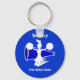 Cheerleader's key chain with cheer megaphone and cheerleader in white and royal blue. Customise with your name and school name, change text or remove text. The background colour can be changed or other colour choices are available. Great gift or stocking stuffer for the cheerleader in your life.