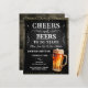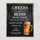 Cheers and Beers Birthday Invitations. Easy to personalise. All text is adjustable and easy to change for your own party needs. Chalkboard and rustic wood background elements. Fun Chalkboard swirls and flourishes. Watercolor beer mug. Invitations for him. Bar or backyard BBQ birthday design. Any age, just change the text.