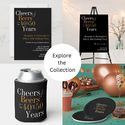 This is a cool and modern, Joint Birthday party design with a cheers and beers theme. It is a simple, minimal design, in classic black and gold typography. Perfect for a cool and fun, double celebration birthday party or celebration. This design is fully customisable, simply use the personalise this button to change the age, or the rest of the text, or use the editing tool to change the colour or font. If you need help with personalisation, matching products, or for a custom design, contact me via zazzle chat or email: ursuladawnmoon@gmail.com