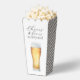 Cheers and beers to 50 years! This fun birthday party popcorn favour box has a frothy tall glass of beer and casual font pairing with handwritten script and serif fonts spelling out "Cheers to 50 Years!" You can edit the age to any age if so desired. The sides of the favour box have a black and white diagonal stripes pattern to coordinate with the other party supplies in a matching collection.