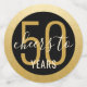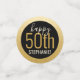 Custom Black and Gold Personalised Large Oversized Birthday Table Confetti Sprinkles for a Modern and Elegant Birthday Party for any Age with Faux Gold Foil Circle Border. Add the name and edit the age for any birthday party celebration with "Cheers to 50 years" and "Happy 50th!" text.