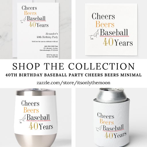 40th Birthday Baseball Party Cheers Beers MinimalDesigned by Only The Moon