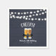 Add stylish detail to your special day with this personalised party napkin. This design features the lettering " Cheers", string lights, beer glass graphics on a rustic blue wood background. You can personalise the text for any event or party. Matching invitations and party supplies are available in my shop BaraBomDesign.