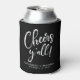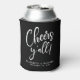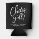 Give your wedding guests, bridal party and groomsmen a personalised keepsake souvenir of your special day. This modern black can cooler wedding party favour features "Cheers Y'all!" in a stylish white script. Add your first names and wedding date.