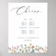 A modern wedding bar menu poster with a bottom border of colourful watercolor wild flowers. "cheers" is in grey modern calligraphy style font. Personalise with your wedding details. Available as a downloadable.