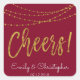 Cheers Burgundy and Gold Foil String Lights Square Sticker