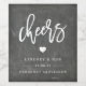 Personalise these brushed charcoal grey chalkboard style wine labels with your names, wedding date and wine varietal or personal message. Design features "Cheers" in white handwritten style brush lettering with a small heart illustration.