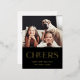 This stunning gold foil Happy New Year postcard for 2023 says "Cheers" in modern, elegant gold foil typography on a dark, black background. Add your favourite personal photo.