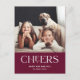This stunning Happy New Year card for 2022 says "Cheers" in modern, elegant white typography on a merlot red background. Add your favourite personal photo.